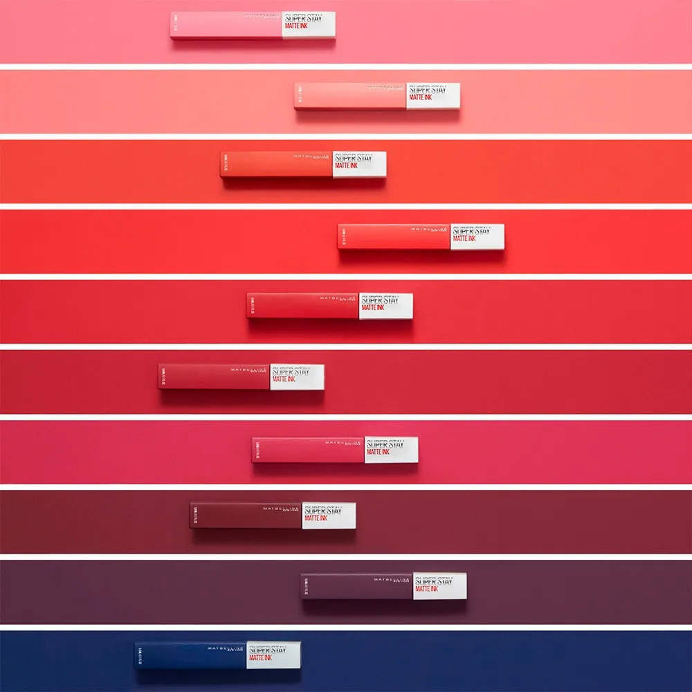 O Batom Líquido SuperStay Matte Ink oferece uma cor intensa e duradoura com um acabamento matte impecável e de alta cobertura nos lábios. Sem borrar ou transferir.