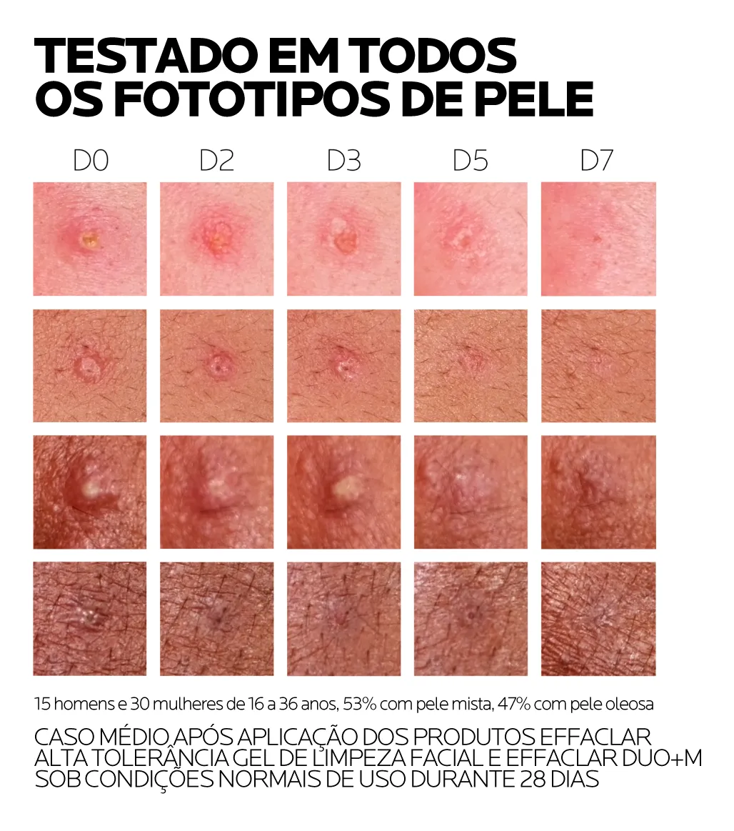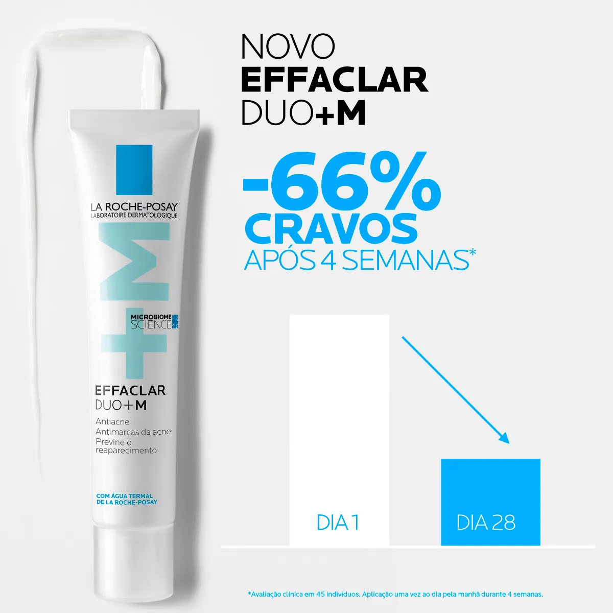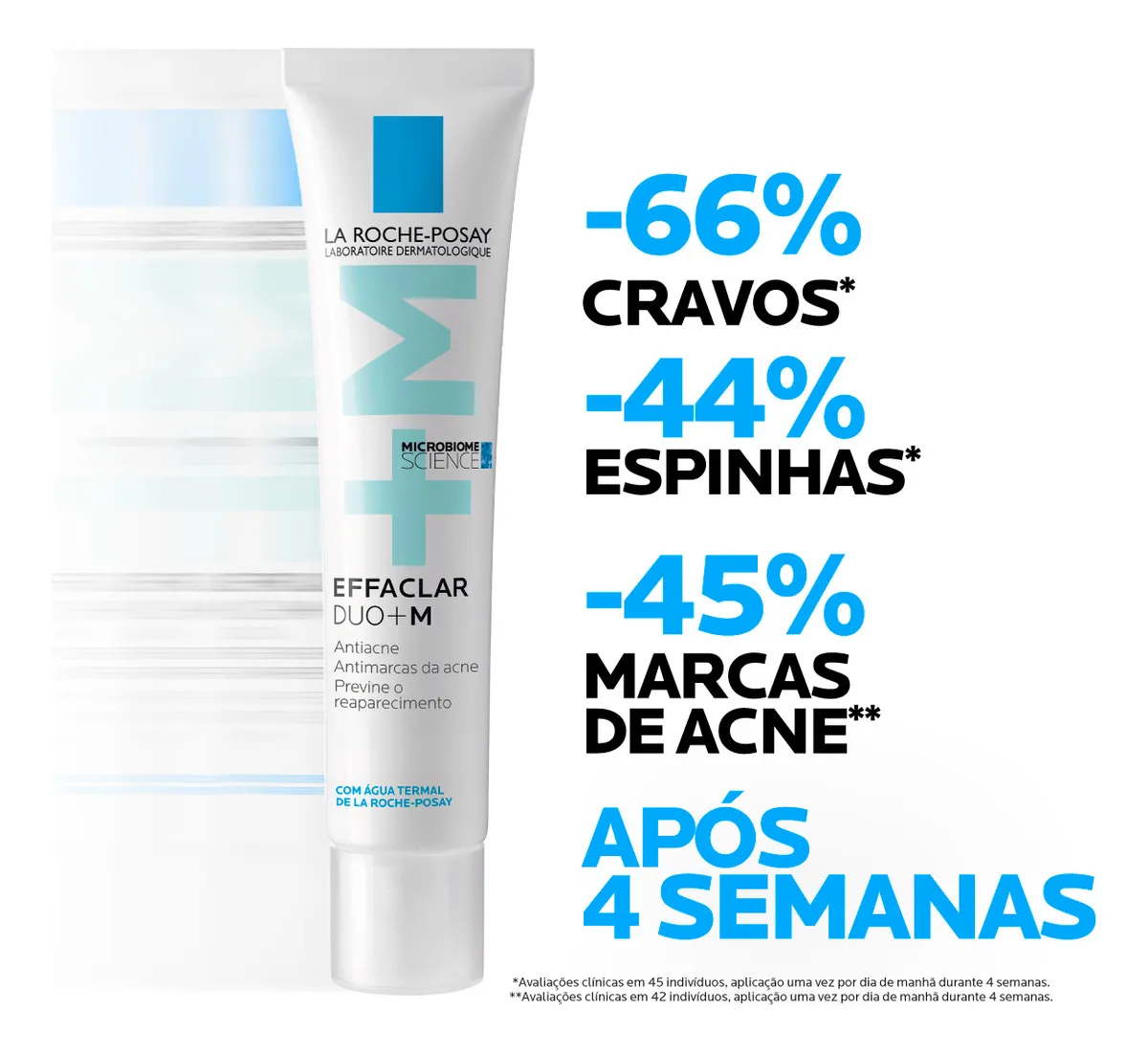 Este poderoso produto utiliza o novo ingrediente ativo Filobioma, que trabalha com a ciência do microbioma para equilibrar as bactérias e reduzir a gravidade da acne. Enriquecido com Niacinamida e Procerad, EFFACLAR DUO+M reduz a produção excessiva de sebo, combate a bactéria C.Acnes IA1, e ajuda a diminuir as marcas escuras e cicatrizes. Testado em todos os fototipos de pele, ele oferece uma solução abrangente para aqueles que sofrem com acne severa, proporcionando uma pele mais saudável em poucas semanas.