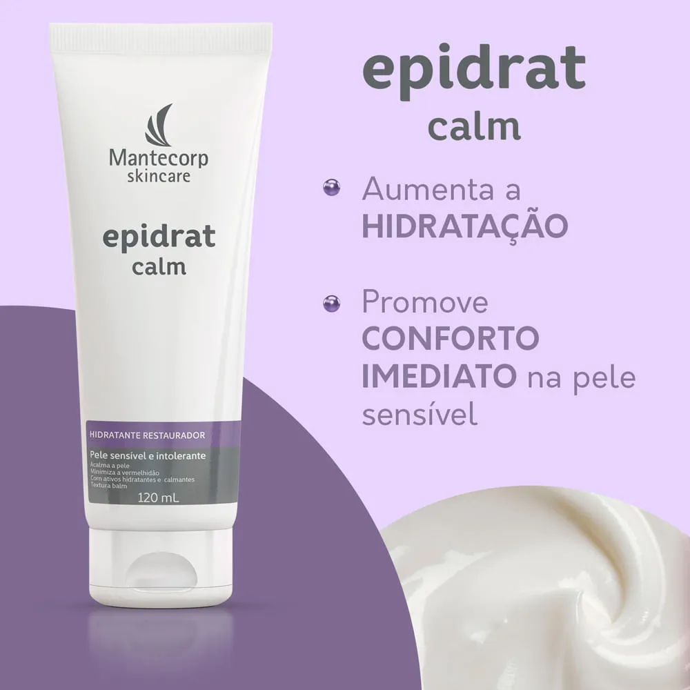 Epidrat Calm é um hidratante restaurador e calmante para peles sensíveis, intolerantes e sensibilizadas. Formulado com o exclusivo complexo de ativos calmantes (Complexo Sens C) que age no aumento da tolerabilidade e na minimização dos sinais (vermelhidão, descamação e ressecamento) e sintomas (coceira, pinicamento, queimação, sensação de calor e repuxamento).