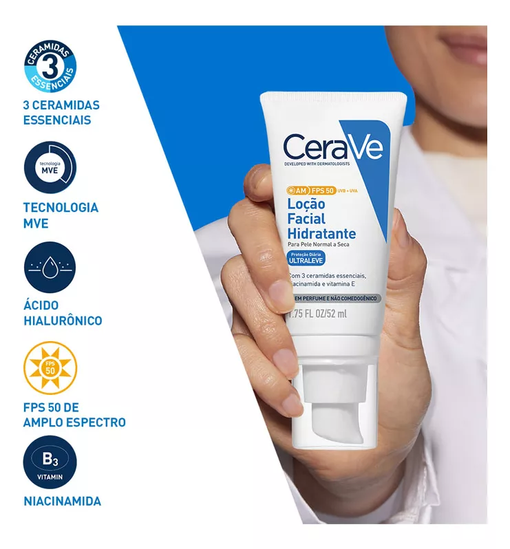 Loção Facial Hidratante Am Fps 50 Para Pele Normal A Seca 52ml Cerave
